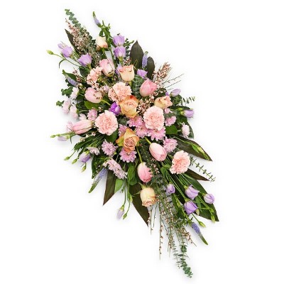 Toon uw medeleven en deelneming met dit mooie rouwarrangement. Dit bevat doorgaans bloemen zoals rozen en seizoensbloemen en -bladgroen.